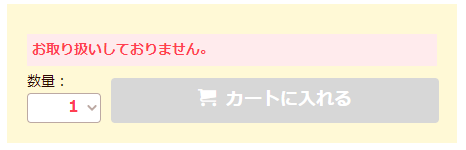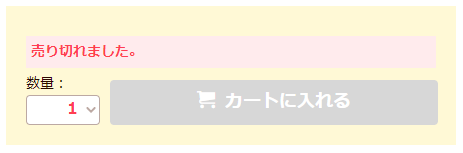 また、「カートに入れる」ボタンが出ていても、カートへ入れていただきます際、【在庫切れとなりました】とのメッセージが出る場合はお品切れとなっておりますため、商品がカートへ入りません。